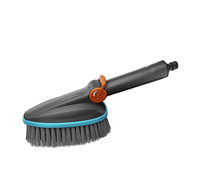 Die GARDENA Cleansystem Handbürste M soft für die sanfte und gründliche Nassreinigung kleinerer, empfindlicher Flächen im Außenbereich.