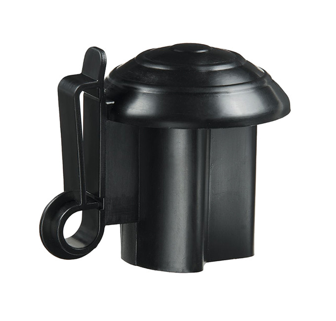 Der Kopfisolator T-Pfosten bietet ein neues Design mit einer verbesserten Pfahlaufnahme, um eine sichere und stabile Befestigung an T-Post-Zaunpfählen zu gewährleisten. Er ist erweiterbar durch Ecklösungen für Band und Seil und sorgt gleichzeitig dafür, dass Verletzungen der Tiere am Pfostenende vermieden werden.