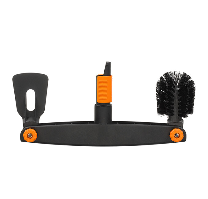 Die eingebetteten weichen PET-Borsten sind bestens geeignet feinen Schmutz oder feinen Schnee zu beseitigen. Mit den äußeren stärkeren Elaston-Borsten hat auch grober Schmutz oder Schnee keine Chance. Durch die angebrachte Metall-Kratzkante ist auch hartnäckige Verschmutzung in Zukunft kein Problem, diese Kratzkante beseitigt hartnäckige, angetrocknete Verschmutzungen, harten Schnee und Eis.