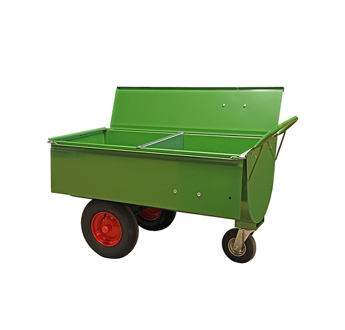- Er verfügt über luftbereifte Räder sowie eine luftbereifte Lenkrolle, wodurch sich der Futterwagen besonders leicht und wendig schieben lässt.