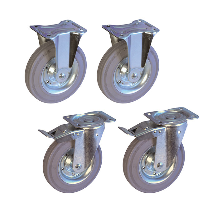 Dieser hochwertige Rollensatz besteht aus 2 Lenkrollen mit Feststeller und 2 Bockrollen, die für eine zuverlässige Mobilität und Stabilität sorgen. Dank der robusten Bauweise und hochwertigen Materialien eignet sich das Set ideal für Transportwagen, Werkbänke und zahlreiche weitere Anwendungen.